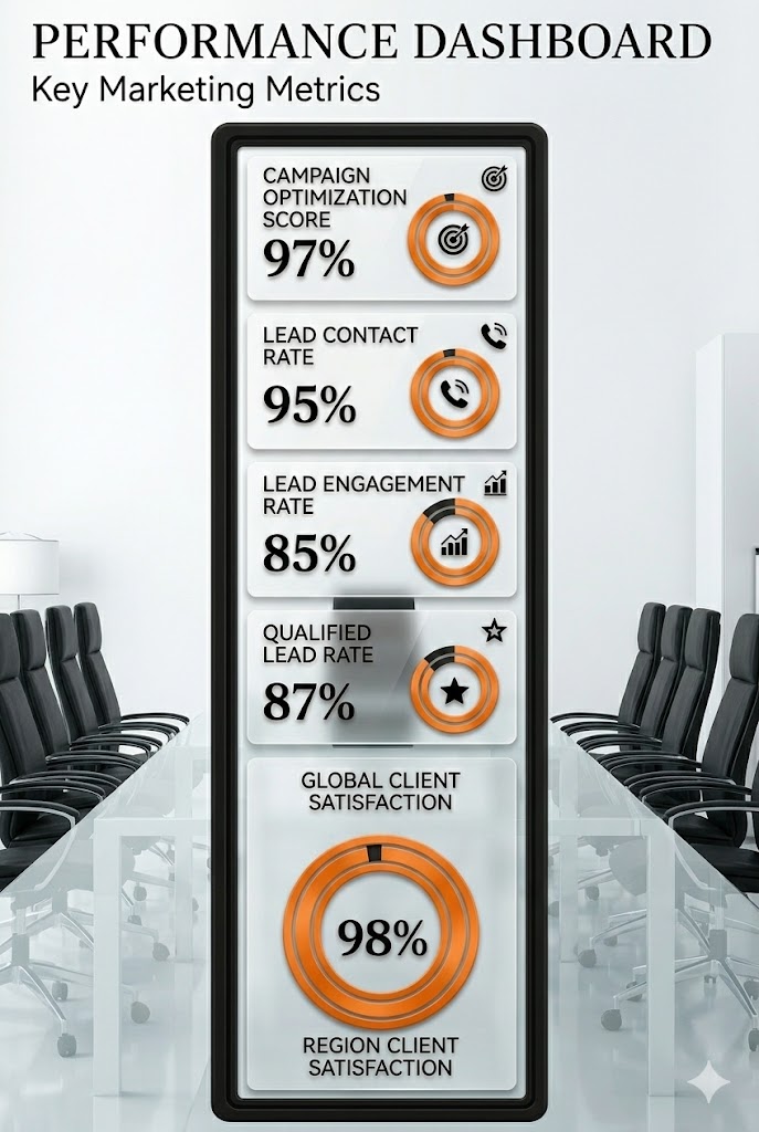 Our digital marketing services focus on strategic campaign management, audience targeting, and performance optimization across paid channels. Performance indicators shown represent internal campaign benchmarks and optimization metrics, not guaranteed results.